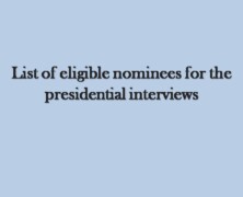 Please click here to check the list of eligible nominees for the presidential interviews. Interviews will be held in ASAB- Room no...