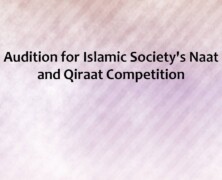 The Islamic Society will hold auditions for Naat and Qiraat Competition. Interested candidates are required to send their Name, Roll number, and contact number to Dr Farhat...