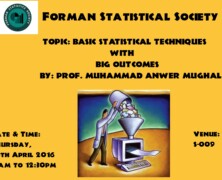 Forman Statistical Society is conducting a lecture on Basic Statistical Techniques with Big Outcomes on Thursday 28 April 2016 at 11:00 am to 12:30...