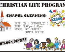 All Christian students (Intermediate and Baccalaureate) are invited to join us on Friday 28 October 2016 from 03:00 pm to 06:00 pm for Chapel Cleaning and Potluck dinner. In the true spirit of service, we will clean the FCCU Chapel together and later have the food together. This is a...