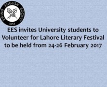 The Ewing English Society welcomes you to volunteer in Lahore Literary Festival 2017 which is going to be held from 24 February to 26 February 2017 in Al-Hamra Arts Complex. The volunteers are required to participate from 09:00 am to 06:00 pm for all 3 days with a lunch break in between...