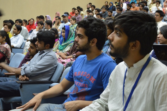 Dr Ashfaq Ahmad Virk from the Urdu Department formally welcomed Amjad Islam Amjad and highlighted his contributions towards Urdu drama and poetry. Amjad Islam Amjad is distinguished for his poetic work, but his drama ‘Waris’ was a huge hit in the 80’s.