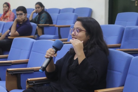 We learned a significant deal about self-awareness from Eisha Waqar. Eisha brought forth different prospects of self-care, which is just as much a vital and effective part of treatment as is medicine and therapy sessions. Journaling is an example of self-care: to vent out unsettling thoughts on paper is a cathartic, therapeutic process. Even if one isn’t suffering from any serious mental illness, activities like journal writing is still a healthy way of understanding one’s ‘Self’ and situations. Lastly, Dr. Kinza Naeem detailed us on the workings of Umang, Pakistan’s first free of cost mental health helpline providing its services 24/7. It works through a telephonic conversation where the issue is identified and a report is built by certified clinical psychologists. Judging from the telephonic session the distressed person is advised to proper therapy. Umang recently organized Pakistan’s first suicide prevention walk and is now spreading mental health awareness across schools, colleges, and universities of Pakistan. The talk was followed by an interactive Q/A. This part of our event made it even more informative and influential.