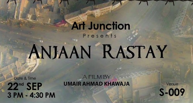 The Art Junction Society will be screening Anjaan Rastay, a documentary by Umair Ahmad Khawaja. The documentary will be screened on Thursday 22 September 2016 from 03:00 pm to 04:30 pm in S-009. This documentary is one of its kind and this project scored highest distinction in the history of National College of Arts. This project has also been selected in India and will be screened there on 03 October 2016.