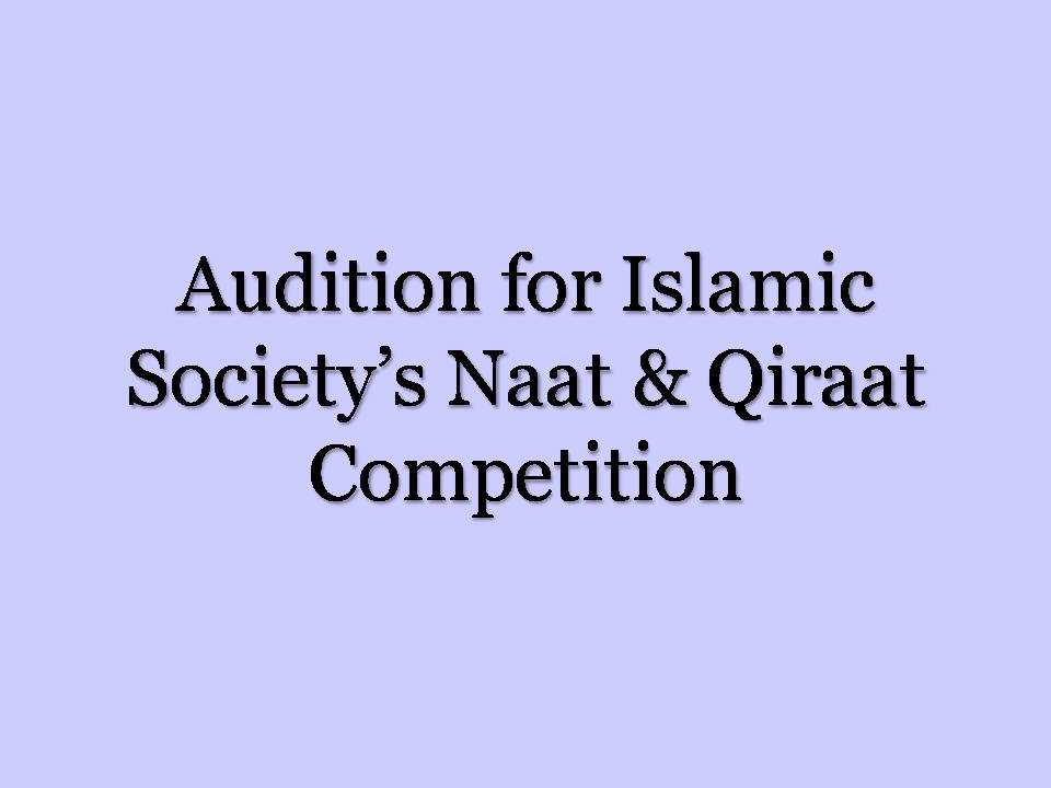 Audition for Islamic Society’s Naat & Qiraat Competition