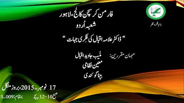 Bazm-e-Fikr-o-Nazar invites you all to ‘Dr Allama Iqbal ki Fikari Jahat’.