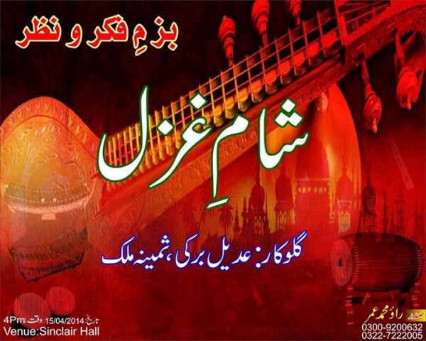 Bazm-e-Fikr-o-Nazar invites you to attend Sham-e-Ghazal on 15 April 2014 at 4:00 pm in Sinclair Hall.