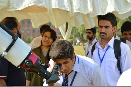 Benade physics society (BPS) with the collaboration of Lahore Astronomical Society (LAST) organized an Solar Observation on 19 October 2016. All the university and college students and faculty members were invited to be a part of this event. The objective of this event was to examine the atmosphere of the Sun through “Hydrogen Alpha Telescope”.