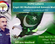Character Building Club arranges CCPO Lahore, Captain (R) M Ameen Wains address to FCC students on Thursday 21 April 2016. The objective of the lecture was to share security concerns regarding educational institutes and generally about all of the Lahore city. CCPO told students that if we...