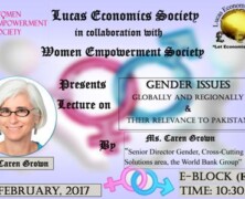 The Women Empowerment Society and the Lucas Economics Society presents a session on the Wednesday 08 February 2016 on Gender Issues, their effects on global and regional levels along with their relevance to Pakistan. Dr Caren Brown, a reputed director at the World Bank Group will be giving an...