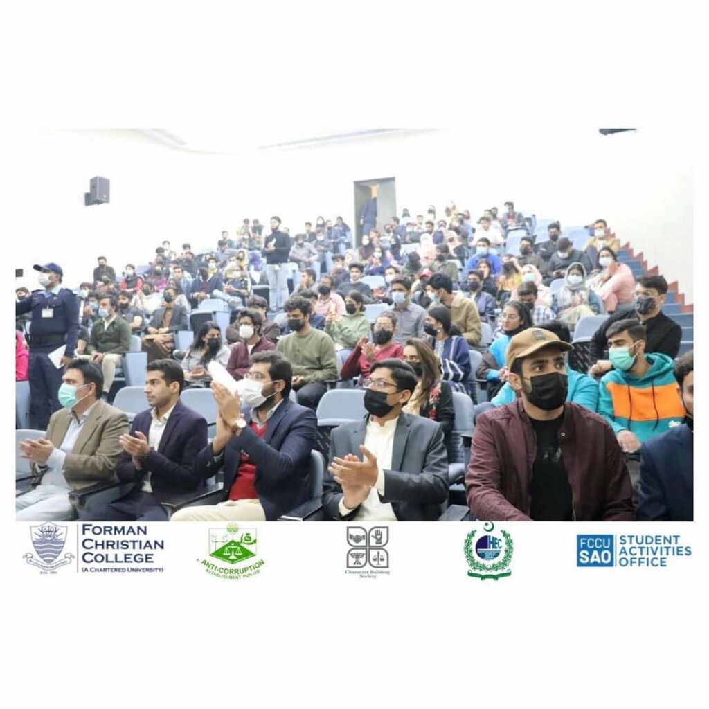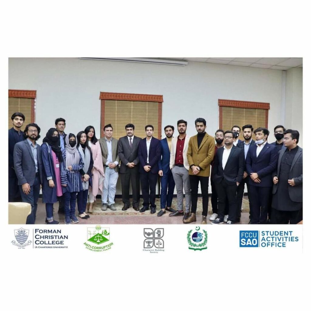 On 6th December 2021, the Character Building Society held an awareness session on the “Importance of Anti-Corruption”. The event was started by the warm welcoming speech by our worthy President CBS Muhammad Sawaiz Fatar. The guest speaker who enlightened us with his words was Director-General Anti-Corruption Establishment, Punjab Mr. Muhammad Gohar Nafees. Associate Vice Rector Dr. Gloria, and, Chief Safety and Security officer FCCU Lt. Col. (R) Khaqan Mahmood glorified the session with their presence.