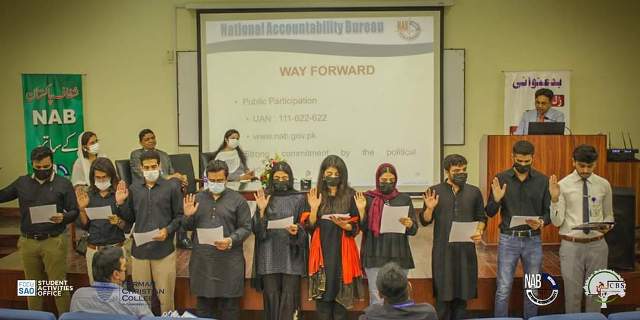 The Assistant Director NAB Lahore Ms. Munazza, displayed a presentation of how National Accountability Bureau (NAB) operates and hold the corrupt accountable. It was a highly informative, interesting, and interactive session for the fellow students as the director NAB Lahore, Syed Muhammad Hasnain, himself answered all the questions and doubts related to the Bureau’s tasks and actions. The highlighted moment was the new student council 2021- 2022 of CBS took their oath under the guidance of Director NAB Lahore.