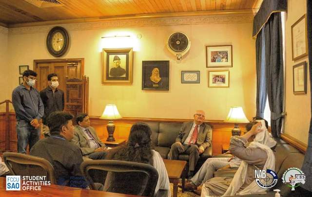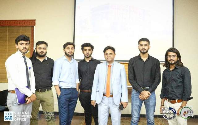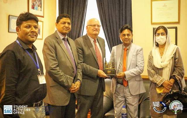 On 8th July 2021, CBS organized a meeting with team NAB. The Rector FCCU Dr. Jonathon S. Addleton, had an interactive session with the Director NAB Lahore Mr. Syed Muhammad Hasnain. Various notable personalities including Deputy Director NAB Lahore Ms. Beenish Nouman, Assistant Director NAB Lahore Ms. Munazza, Registrar FCCU Brig (R) Dr. Nayer Fardows, Chief Student life Officer FCCU Mr. Kashif Sharoon, Advisor CBS Dr. Hamid Latif, Manager Student Activities FCCU Mr. Qandeel Rabbani and President CBS Muhammad Sawaiz Fatar were a part of this synergistic session.