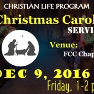 Christian Life Program is holding a Christmas Carol Service on Friday 09 December 2016 from 01:00 pm to 02:00 pm.