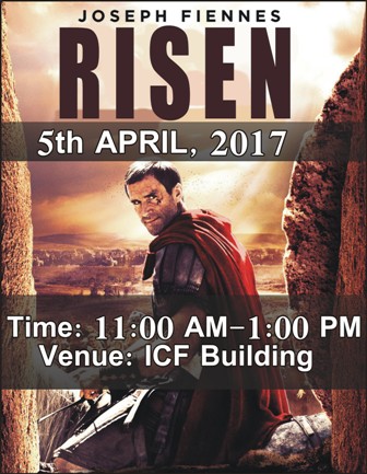 Christian Life Program is screening a movie: ‘Risen’ on Wednesday 05 April 2017 in the ICF Building right next to the FCCU Chapel from 11:00 am to 01:00 pm.