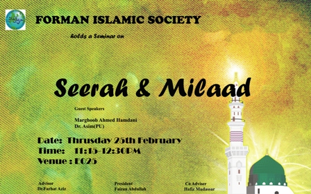 Islamic Society invites you to attend a seminar on Seerah and Milaad on Thursday 25...