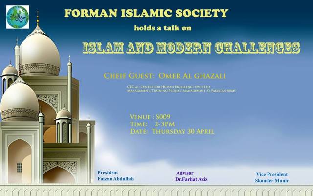 Islamic Society to hold talk on Islam and Modern Challenges