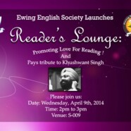 The Ewing English Society cordially invites you to the launch of the Reader’s Lounge and pays tribute to Sir Khushwant Singh – an acclaimed novelist, lawyer, politician and journalist.
