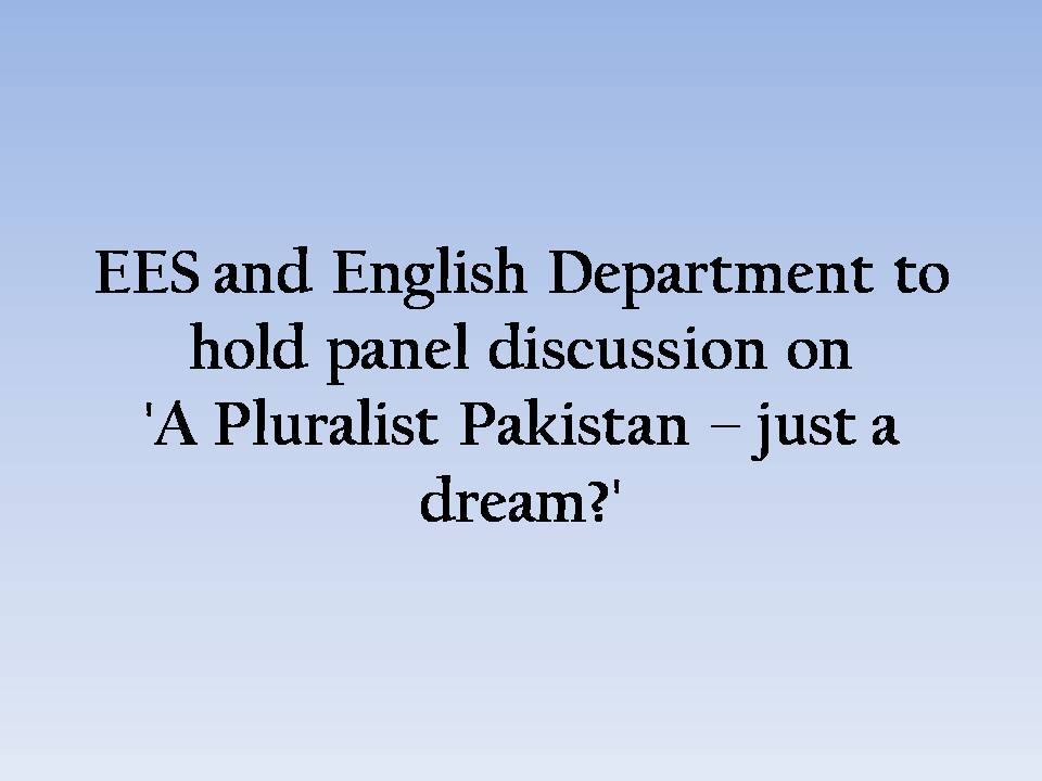EES and English Department to hold panel discussion on ‘A Pluralist Pakistan – just a dream?’