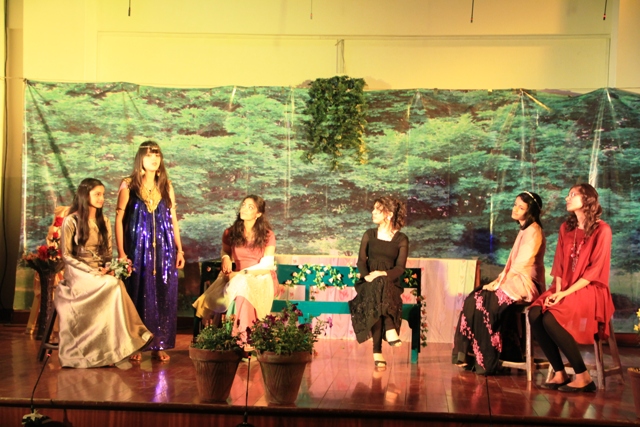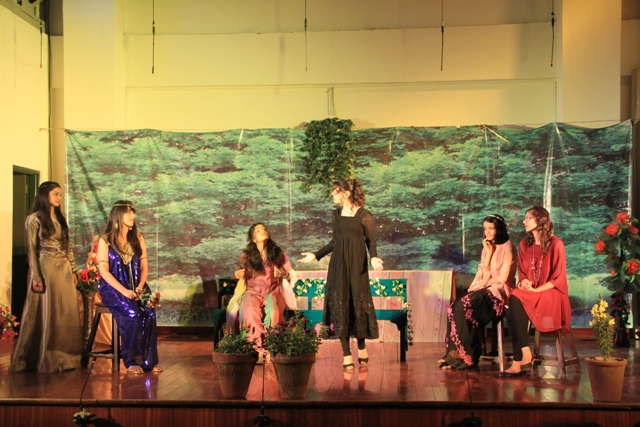 Written by Charles George, the second play, When Shakespeare’s Ladies Meet, was a satirical comedy, in which five of Shakespeare’s heroines meet to give Juliet advise on love. The cast members were Huma Rana, playing Portia, Wania Khan playing Catherine, Yusra Amjad playing Ophelia, Hameem Naveed as Desdemona, Maham Asif as Juliet and Anook Kamran Kureshi as Cleopatra.