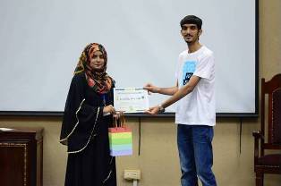 The First prize was a power bank and a USB awarded to Javeria. Second prize was given to an Intermediate student Arsalan Haider, which was a power bank and third winner was Mahnoor Majeed who was given a mug.