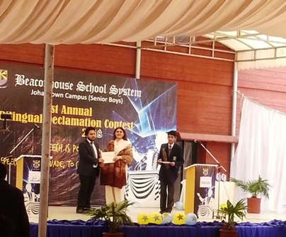 Shahzaib Khan got best speaker award at LGS Johar Town.