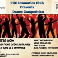 The FCC Dramatics Club will present its Dance Competition on 13 November 2014. The Competition will take place in Sinclair Hall from 4:00 pm to 7:oo pm.