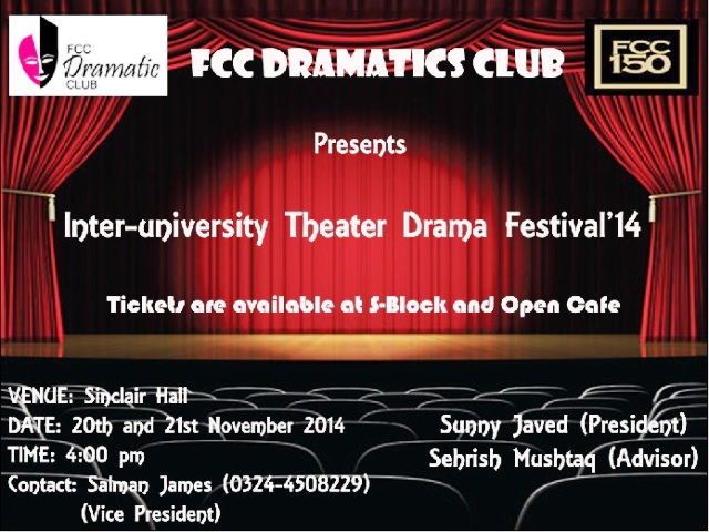 The FCC Dramatics Club presents its Inter University Theater Drama Festival 2014.