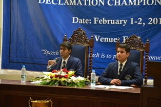 The initial round of the English and Urdu Declamations was held on 01 February 2016 and soon one after the other the speakers debated more vehemently. However by the end of the day the most superlative teams and individual speakers were winnowed from the weaker elocutionist. From amongst the adjudicating panel was the Chief Adjudicator Dr Faisal Kamal Haidery . The adjudication panel of Urdu declamation consisted of Hamza Tarar and Syed Ghulam Mohiyyudin. The English adjudicating panel consisted of Ishtiaq Ahmad and Salman Butt. For the Pushto panel, Mehreen Afridi and Dr Israr Atal were the adjudicators and finally for the Punjabi adjudication panel Mrs Sajida Kirmani, Waqas Chisti and Dr Mohammad Tahir functioned as such.