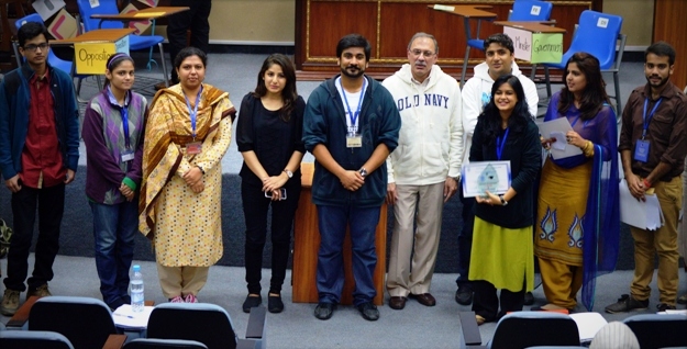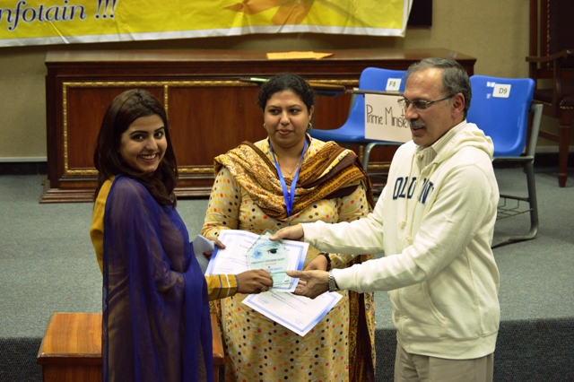 For round one four groups were formed. Each group consisted of two teams, one of which was the government and other the opposition. On completing round one, only one team qualified for the semifinals out of each group and the topics were provided giving each team thirty minutes to prepare as the other team made its case. By the end of the semifinal round two teams were left out of four teams and they competed in the final round. Dr CJ Dubash, Vice Rector Intermediate, was the chief guest for this competition and provided the topic for the final round. Participants were given ten minutes to prepare their cases and present in front of the adjudicators. In the final round Naba and Khadeeja secured first place for themselves in the competition. Certificates were provided to all the participants by Dr Dubash while shields were presented to members of the winning team.