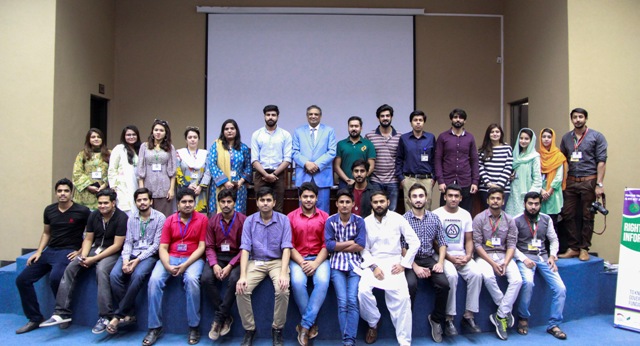 Forman Journalism Society with the collaboration of Punjab Information Commission arranged a lecture on the Right to Information by our honorable guest speaker Mr Sohail Waraich. The session was held on 30 April in auditorium S-009. Mr Sohail was warmly welcomed by the society council and the students of FCCU. The session was supervised by Advisor FJS, Syed M Saqib; Lecturer, Ms Nida Tahseen and Ms Mahwish Batool. It started by show casing of a short documentary in which students were shown working and gaining the experience needed to excel in life. They talked about their experience of working in the Punjab Information Commission. Work, Learn and Change were the main motives that lived by. Our guest speaker, Mr Sohail Warraich was then invited on stage to further talk about the entire idea. He started by his brief introduction and talked about his early life back in FCCU where he had studied as well as taught. He also discussed Right to Information Act and the division of society. He also emphasized over the abolishment of class system in Pakistan and the right of raising opinions. Later on, a short session of questions and answers was encouraged, where students asked questions to our respected guest speaker and answers were given accordingly and in the end brochures were distributed among the audience for information of the internships offered to students.