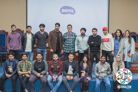 The event had Formanites in an awe as they saw the movie and behold the scenes with heightened emotions. The screening was supervised by the Advisor FJS, Mr Syed M Saqib and attended by Chairperson, Ms Rachel A Hasan and other faculty members from the department. The movie was a loose adaptation of Romeo Juliet, as explained by the director, Mr Harune. The film starts with the celebration of birthday of one of its characters named Kabir Jan. One of the guy from the celebration area crashes into the women area, where he bumps into Abdullah Jan’s daughter Parveen. Then the movie’s main plot starts getting divulged to the audience as parveen’s father wants to marry her to Asim but she isn’t willing to get married to him. Then the characters of Shahbaz, Akmal and Miss Christina arrive in the movie with their side of plot connected to that of aforementioned characters. At the end , Akmal kills Shahbaz and then kills himself and audience also get to know that Shahbaz killed Parveen’s family at 12 as he was being used. The movie had a tragic end but it kept the viewers glued to the screen till the end. Indeed it was quite an engrossing production of Mr Harune Massey. He was applauded by everyone for the message and theme. Director had an interactive session with the audience where he shared his experiences behind executing an enthralling project and production like Gardaab.