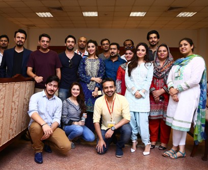 Bilal Ashraf, Hareem Farooq, Azfar Jafri, Ali Rehman Khan, Armeena Khan and Hania Amir were present at the event. The event was the first of the series of J-talks (Journalist Talks), which started with a brief introduction about the series, followed by team Janaan sharing their experiences. National and international success of Pakistani films was highlighted by the team. There was a musical performance by Forman Music Society. The guests talked about Pakistan’s cinema and the challenges faced in the recent years. They distributed CDs and T-shirts as token of appreciation amongst the students. The guests were served refreshments in the executive lounge and were given souvenirs on behalf of the University.