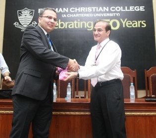 Vice Rector FCC, Dr Sufian Aslam, Dean of Humanities Dr Waseem Anwar, FJS Adviser Faiza Rafique and Co-Adviser Syed Muhammad Saqib welcomed Mr Warraich.