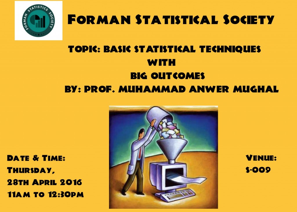 Forman Statistical Society is conducting a lecture on Basic Statistical Techniques with Big Outcomes on Thursday 28 April 2016 at 11:00 am to 12:30 pm.