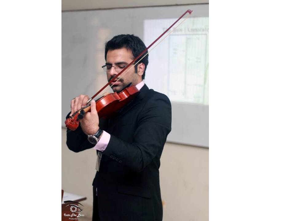 Hamza Butt initiated violin classes at FCC by explaining the parts of the violin and the bow. He shared some introductory videos with the students before emphasizing on the importance of maintaining a good posture. He then taught the concept of whole step and half step with the help of a compact piano. He also students taught how to play scales on violin.