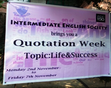Intermediate English Society holds Quotation Week from 02 November to 07 November 2015 on the theme of Life and Success. Quotations on life and success will be displayed on Intermediate notice boards. The main purpose of this activity is to make students interactive with English language as well as give them a food for thought.