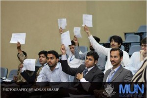 Consisting of two committees, PNA and UNGA, the IntraMUN attracted a lot of newcomers and novices alike who were willing to polish their diplomacy and debating skills. UNGA was chaired by Shayan Shaukat, Moazzam Manj and Ommay Aiman Safi and while PNA was chaired by Muazzam Khan Lodhi, Waqar Karim and Aftab Bashir, the former tackling the issues of militia and terrorism.