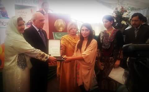 Governor of Punjab, Rafique Rajwana presented shield & certificate along with a cheque of Rs 20,000 to FCC’s student, Irtaza Basit from The Art Junction Society who won third place in the poster competition held by the Child Protection and Welfare Bureau on Wednesday 18 November 2015. Her poster was made on the theme of child abortion.