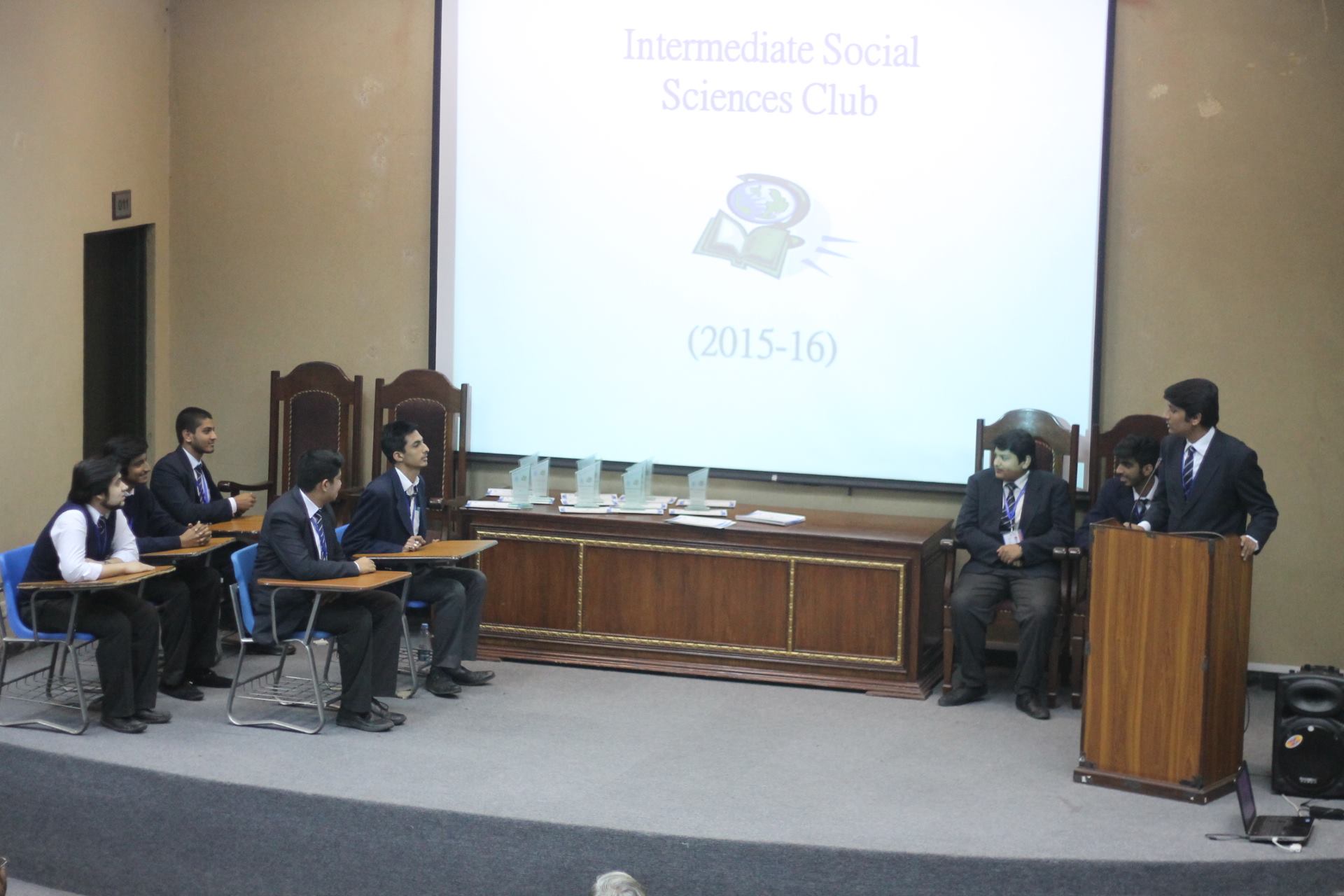 The Intermediate Social Sciences Club held its closing ceremony on 24 February 2016 in S-009. Finance/Logistics Manager ISSC, Hussam Hashim briefed about the activities that were held by ISSC during the academic year 2015-16. Media Manager, Uzair Pervaiz presented a mimicry show, which was much enjoyed by the audiences. The participants, winners of the Quiz competition and the cabinet members of ISSC were awarded shields and certificates by Vice Rector Intermediate, Dr CJ Dubash. In the end President ISSC, Sahibzada Hussain Khurshid shared his experience with ISSC and paid gratitude to the advisors and teachers who have been a great support.