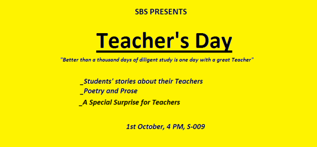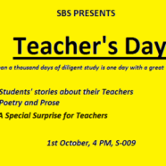 The Senior Biology Society (SBS) brings to you an exciting event to honor our teachers. Students will have the opportunity to talk about their memories about their teachers, and devote poems or speeches to them. There is also a surprise for the teachers at the end of the event. We look forward to seeing you on 1 October 2014 at 4:00 pm in S-009.