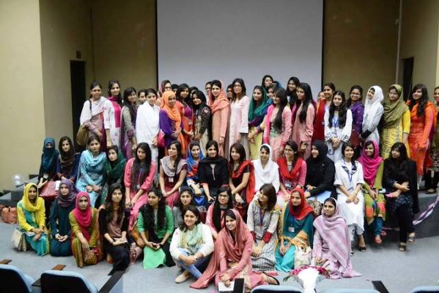 Dr Ayesha Riaz and Ms Vaneeza Ahmed from Shaukat Khanum Memorial Cancer Hospital talked about awareness among female students regarding breast cancer.