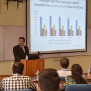 The speaker presented a body of literature on this issue that explain the reasons of faulty poverty estimation mechanisms. He strongly advocated the need for a fair, independent and transparent methodology to be adopted for this purpose in Pakistan. He outlined the critical challenges being experienced in Pakistan as sensitivity of poverty estimates to chosen caloric threshold underlying the poverty lines, using CPI to present annual poverty estimates (with serious shortcomings in the selection CPI basket) and political point scoring over the issue of poverty by understating the incidence of poverty across provinces. In Sindh poverty was showed to have declined by 15% between 2001 and 2004 to show 5% overall decline from 33% to 28%. in this way it appeared that the sharpest decline in poverty was in Sindh, which was an unbelievable15% decline in just 2 ½ years , while the province actually saw a decline in agricultural production in that duration.