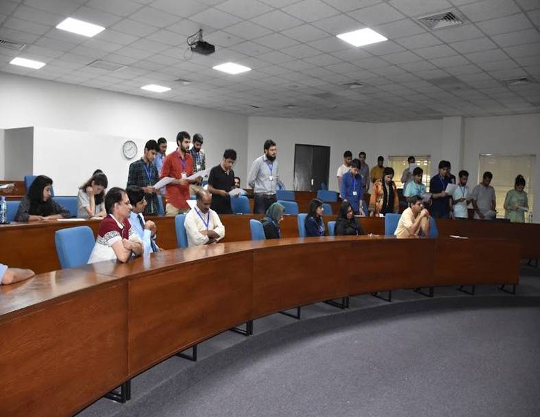 The event was fabled with teachers from economics department. Along with the presence of ex-president, Amjad Ali. The host of the event Filza Ahsan, who’s also the state secretariat, hosted the event with immaculate speaking skills. Her brilliant command on the language made her the perfect entrant for the post. The event started with the recitation of the Holy Quran and the Bible, done by Abdul Jabbar and Adeel Harrison, respectively. Associate Professor and Chairperson of Economics Department, Dr Shabib Haider presented a trophy to the former president of the society and appreciated his services for the society. Dr Haider congratulated the new formed council and thoroughly briefed them on the conduct and the responsibilities each member of the society have. After the speech of Dr Haider, the new president of the society took charge of the stage and spoke about the plans he have for the society. He called upon the stage every member of the society and introduced them with the audience.