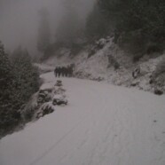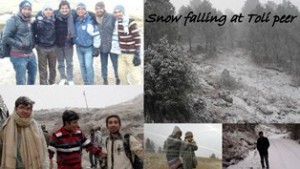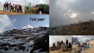 The next day everyone was ready for the most awaited spot of the trip which was Toli Peer. It is a Mazaar at the top of the hill. One side of the Mazaar faced the grassy mountains while the other showing the great fog covered mountains of Azad Kashmir. After spending some time the weather suddenly changed severe cold wind started blowing and the thick heavy clouds covered the mountains. Before we could return to our buses light snowfall started which made everyone jubilant as it was the first snowfall of the season and the mountains were still to be covered in snow.