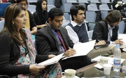 The event lasted two days. On the first day, famous social entrepreneurs of Pakistan shared their inspiring stories with the students and enriched them with their innovative business ideas which helped them in attaining success. The first guest speaker was Mr Iqbal M. Khan, a senior fellow Entrepreneurship at Lahore School of Economics. He is the member of Think Tank of the World Entrepreneurship Forum (WEF) and the founding President of a Forum on Schumpeterian Entrepreneurship Society. He is also the Author of “Unlocking the Potential of Small Enterprises”, “The Leading Social Entrepreneurs of Pakistn” and “Kazakhstan Business Guide”. The second guest speaker was Miss Ashba Kamran’s (Chief Executive- FRESH, Green Meadows School, Pakistan Association for Difficulties In Learning, FRESH Reading Clinic, FRESH SNF). Her role in Education sector has been quite prominent and she has been helping dropout students for the past 10 years. A mother of a dyslexic child, Ms Ashba has struggled hard and helped many parents and children cope up with the LD’s. The third guest speaker was Miss Zehra Ali who is the Founder and CEO of ‘Ghonsla’, an innovative technology company that provides sustainable and affordable insulation equipment to undeveloped markets in Pakistan and worldwide. Ghonsla has a global vision to increase the quality of life for people belonging to different fields of life, and to conserve precious environmental resources and create green jobs. The fourth guest speaker was Miss Ammara Farooq Malik who has almost fourteen years of professional experience as an entrepreneur, social entrepreneur, lawyer, law professor, development consultant and free lance journalist. Currently, she is the Editor-in-Chief of the International Online Resource Forum Impact SEPLAA. The last speaker was Mr Ali Raza Khan, the Founder of Youth Engagement Services (YES) Network Pakistan. After the speeches, the question-answer session started and students were given the opportunity to ask questions form these renowned social entrepreneurs. Afterwards, there was high-tea followed by a social mixture in which students discussed and shared their business ideas with the social entrepreneurs as well as with each other.