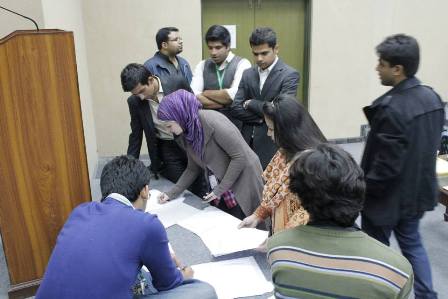 The second day of the event was divided into two modules. The first module was basically for students who wanted to acquire an in-depth knowledge about the business canvas model. The Business canvas model was explained by Mannan Amin, who is currently an associate professor at Forman Christian College. He is one of the co-founders of Tintash, a leading mobile game processing company in Pakistan. Mr Mannan is considered as an intellect in the game development industry of Pakistan and is also working with P@SHA and PSEB to start an annual game development conference for South Asia. After the lecture, the participants were told to work on their presentations. Facilitators were allocated to each team and they guided them in finalizing their presentations.