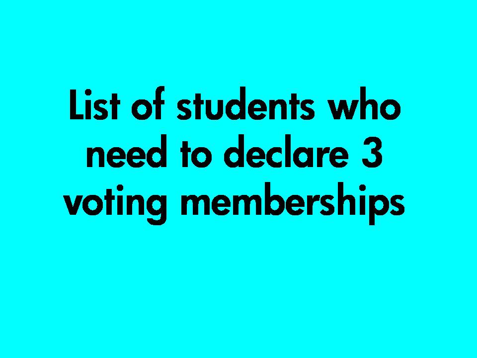 The following students need to declare maximum of three voting memberships by 28 March 2014; otherwise they will not be eligible to vote in the upcoming students societies’ elections.