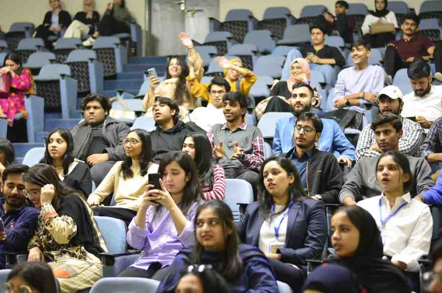 Following this, Ghazi Taimoor (a renowned TED speaker, educationalist, entrepreneur, and social activist) delivered an interactive seminar on the topic, Learning to Launch. It invited students to rethink traditional education systems. Mr. Ghazi highlighted the limitations of the “banking” model of education and stressed the importance of fostering creativity, critical thinking, and self-discovery. He encouraged students to embrace curiosity and challenge conventional norms, reminding them that real learning comes from questioning, innovating, and thinking independently. The interactive nature of the session allowed students to engage with the speaker and dive deeper into these ideas, leaving everyone motivated to approach education with a fresh perspective.
