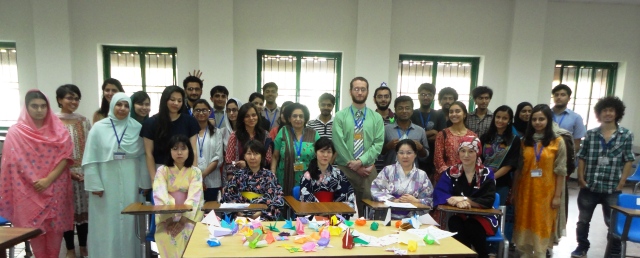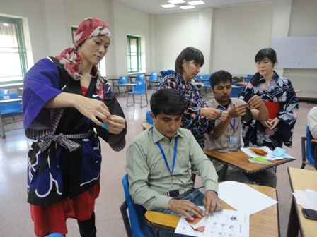 The Philosophy Society arranged a workshop on origami which is a Japanese art of paper folding on 14 April 2014. Seven Japanese ladies were invited to FC College who taught the students how to make origami items. Guests especially wore kimonos for this particular event. University students were invited to attend the lecture and learn how to create origami items. By the end of the lecture more than a hundred items had been created by the participants.